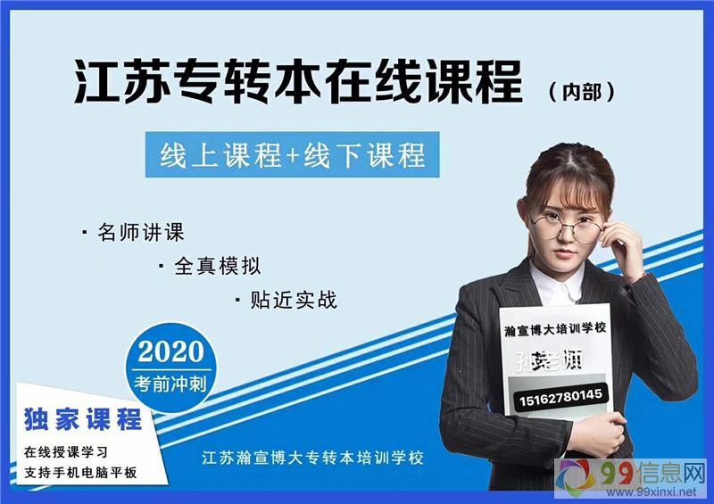 江苏瀚宣博大专转本培训学校根据疫情期间无法出门原因制定对应视频课程。内容丰富,根据12年辅导学生转本经验,教务老师编写出最适合在家复习的视频课程。并针对基础、班次来区分不同内容。让无论是新起点还是一直在学习的学员都能都很好精准的吸收到好的专转本内容知识99信息网。所有报名瀚宣博大专转本培训学校。无论家长还是学员请放心。瀚宣博大解决你们学习上的一切后顾之忧。