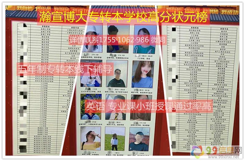 江苏瀚宣博大专转本学校14年五年制专转本辅导经验,专业从事英语和专业课培训,根据学员不同基础情况分班授课,量身定制教学计划和复习进度,更有经验丰富的名师教学,针对考试内容和重点难点深入剖析,历年通过率高达85%以上,是江苏省唯1一家线下大型连锁五年制专转本培训机构,大机构更有信誉,师资力量强大,办.学.时间长,值得信赖,我们为学生提供较优质的专业化、系统化、特色化的五年制专转本培训的教育服务,让五年制高职学生专转本省去更多无用功,详情联系瀚宣博大宋老师1755(微)1062(信)986了解,联系老师预约转本试听课www.99xinxi.net99信息网。
