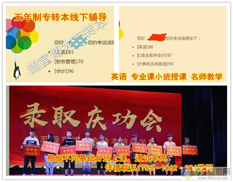 江苏瀚宣博大五年制专转本培训辅导班是专转本业界公认的师资水平高、通过率高、学习效率高的专转本培训学校,是五年制一贯制高职生专转本辅导班的不二选择!开设英语和所有主考院校专业课教学,小班化的授课,便于老师管理每位学员,并及时了解学员最新学习情况并进行针对性的辅导,巩固知识点,加强记忆,专业课同样如此,专业课老师都是本科院校的老师,根据考纲,从易到难一一补习,帮助学生掌握知识点,更多转本上课详情联系瀚宣博大宋老师1755(微)1062(信)986了解,联系老师预约转本试听课99信息网www.99xinxi.net。